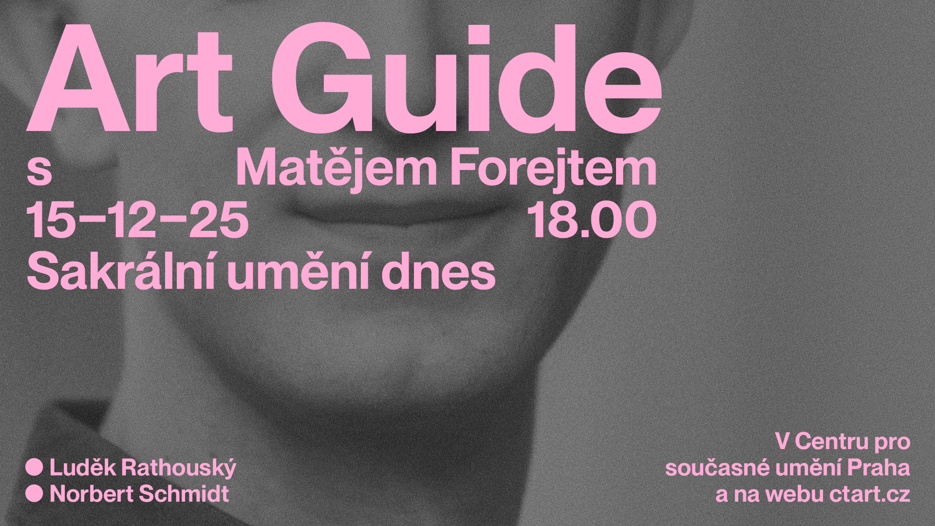 V jaké kondici je současné sakrální umění? Proč v českých kostelích tak často narážíme na nekvalitní artefakty nebo pouhé reprodukce? A co se naopak v posledních letech v této oblasti povedlo? To budou témata předvánočního vydání cyklu Art Guide s Matějem Forejtem. Hosté debaty jsou Luděk Rathouský, člen skupiny Rafani a Norbert Schmidt, autor realizací pro sakrální prostor a kurátor, architekt a redaktor časopisu Salve .