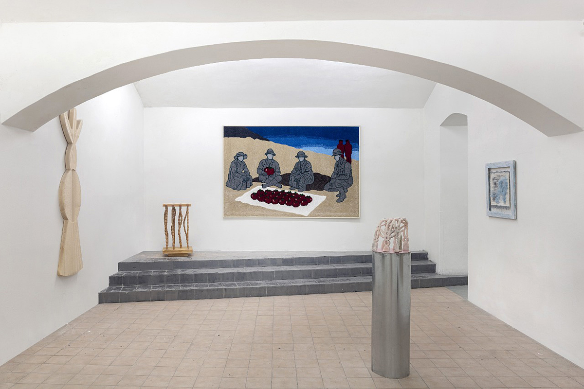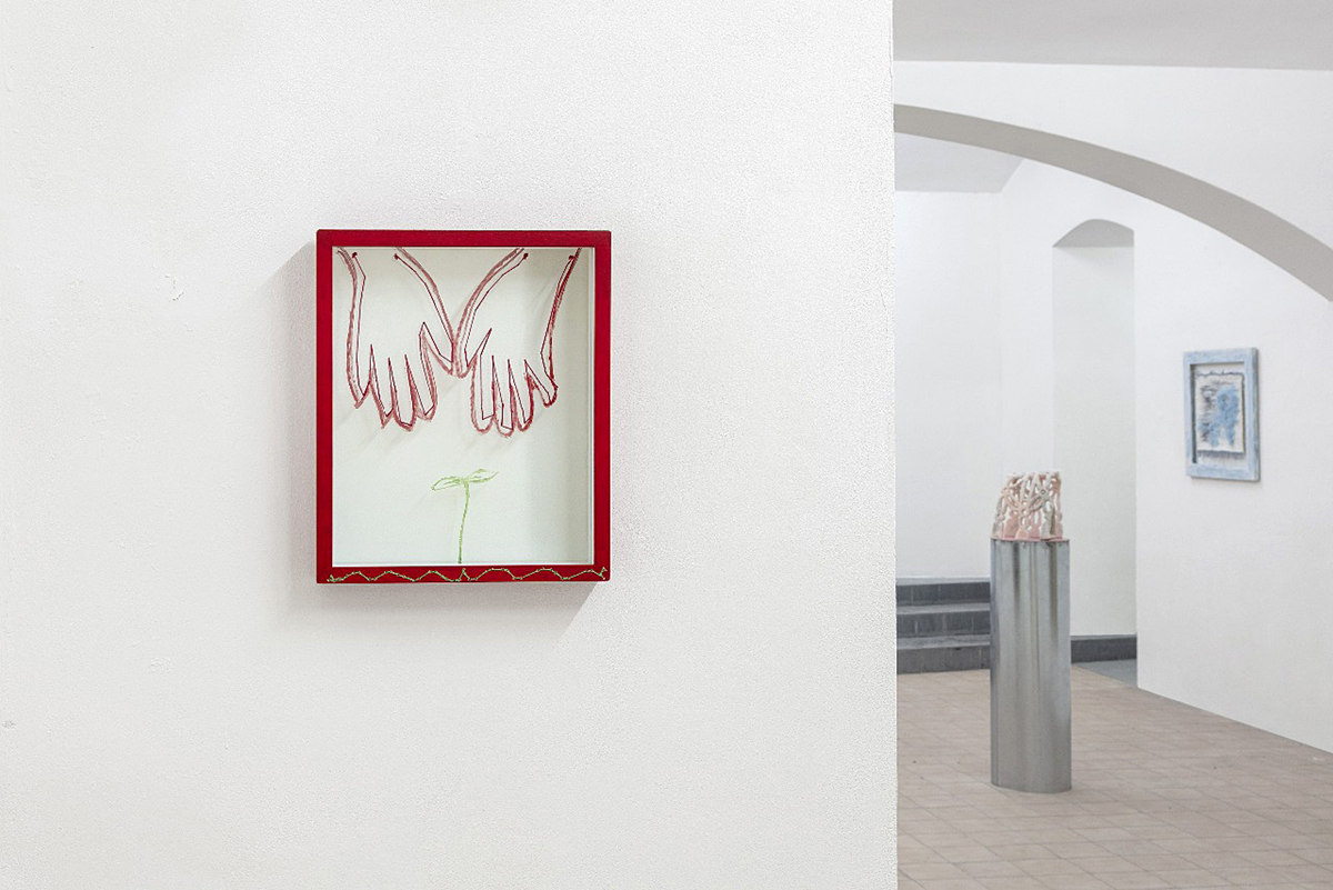 Hned na úvod musím zmínit, že každý z prezentovaných umělců tvoří za pomoci relativně netradičních technik, a výstavě to jen svědčí. Karíma Al-Mukhtarová zde prezentuje obrazy/nástěnné koberce z příze a kobercové látky. Matěj Hrbek kreslí pastelkami a k vidění rovněž jsou autorovy epoxidové objekty. Barbora Vovsová u svých objektů používá širokou škálu materiálů – od vosku, drátů, sádry a dřeva až po růžový mramor, ale má tu i kresby na papír či akrylové malby. A u Martina Pondělíčka tvůrčí záběr přesahuje módní tvorbu, objekt i obraz. Už jen tato směs přístupů dodává výstavě Soft Borders neobvyklou atmosféru, nicméně i významová rovina zde hraje důležitou roli.