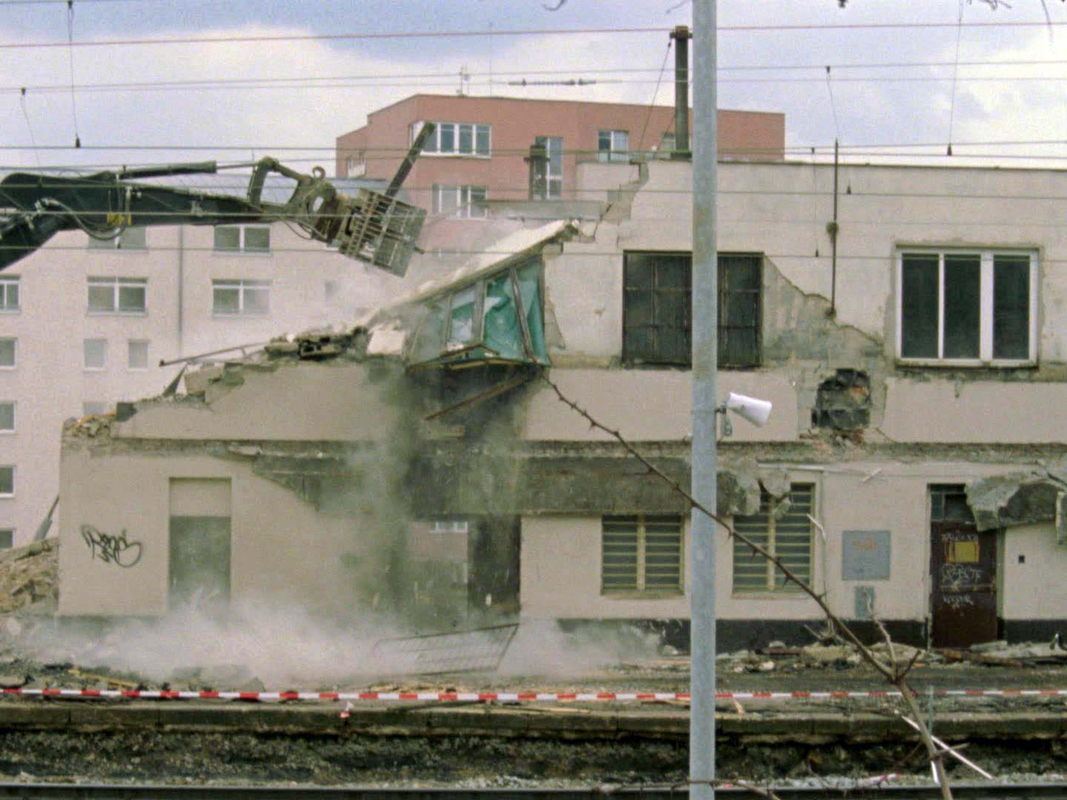 Tato myšlenka se zhmotňuje ve scéně bourání starého vysočanského nádraží, doprovázené nadávkami místního pamětníka. Bezcitnost pokroku se střetává se živou pamětí místa, které je kvůli další zaměnitelné výstavbě mazáno z mapy. Logika, která velí strhnout nerentabilní starou budovu, je podobná logice, jež nás nutí k neustálému sebezdokonalování a výkonu.