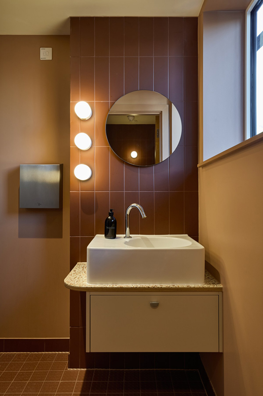 Prosadila jsem spoustu přírodních materiálů, které se vyznačuji dlouhověkostí a nejsou úplně běžné v komerčních prostorech, například dřevěná a korková prkna – tedy takzvaná plovoucí podlaha, která se však nelepila, a tím pádem se může v budoucnu relativně jednoduše opravit či částečně vyměnit. Objevili jsme „dřevěné“ terrazzo vyrobené z odpadu dřeva, které jsme použili při výrobě nábytku na míru – od kuchyňských desek a desek pod umyvadla v koupelnách až po pracovní desky. Většina přírodních materiálů „hezky“ stárne, člověk se však musí oprostit od představy, že vše musí být v perfektním novém stavu, a brát to tak, že ten materiál vyjadřuje nějaký příběh.