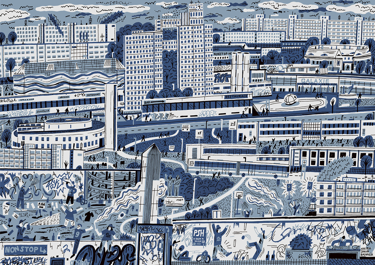 Fantazie nechyběla ani sochaři Kurtu Gebauerovi, který na ostravském sídlišti Fifejdy II vybudoval v první půli osmdesátých let dětské hřiště Minikrajina, dnes už klasické dílo svého druhu. Projektů, jako je Gebauerovo dětské hřiště, které by do betonových komplexů přinášely kreativní ozvláštnění, je ovšem pomálu. A právě tato typická sídlištní jednotvárnost a mdlost jsou inspirací mnoha umělcům, kteří jsou na výstavě uvedeni.