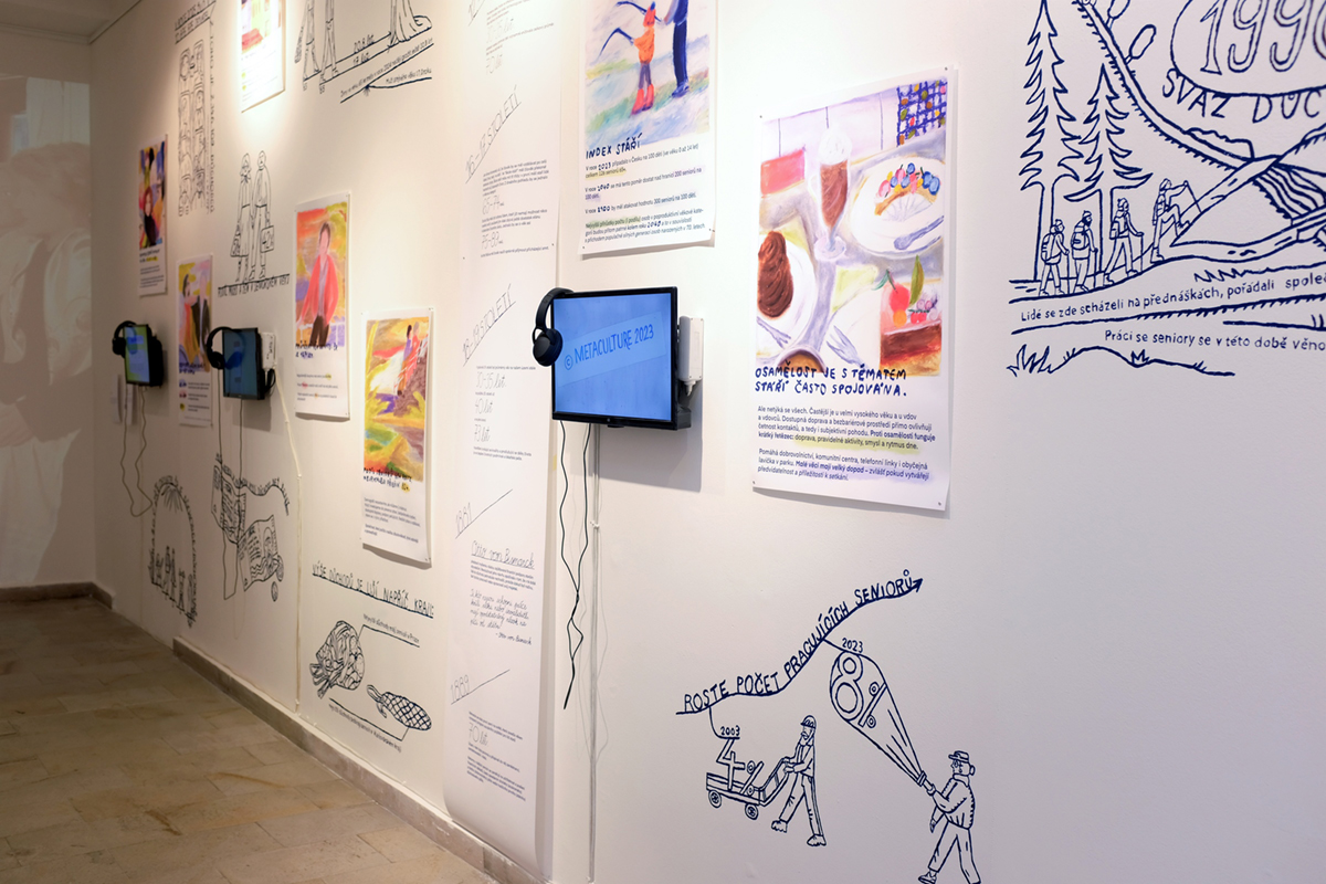 Pohled do expozice Co čumíš tak mladě: výstava o stáří jako inspiraci, která je do začátku jara příštího roku instalována v pražském Atriu Žižkov, foto: Štěpán Mikulenka