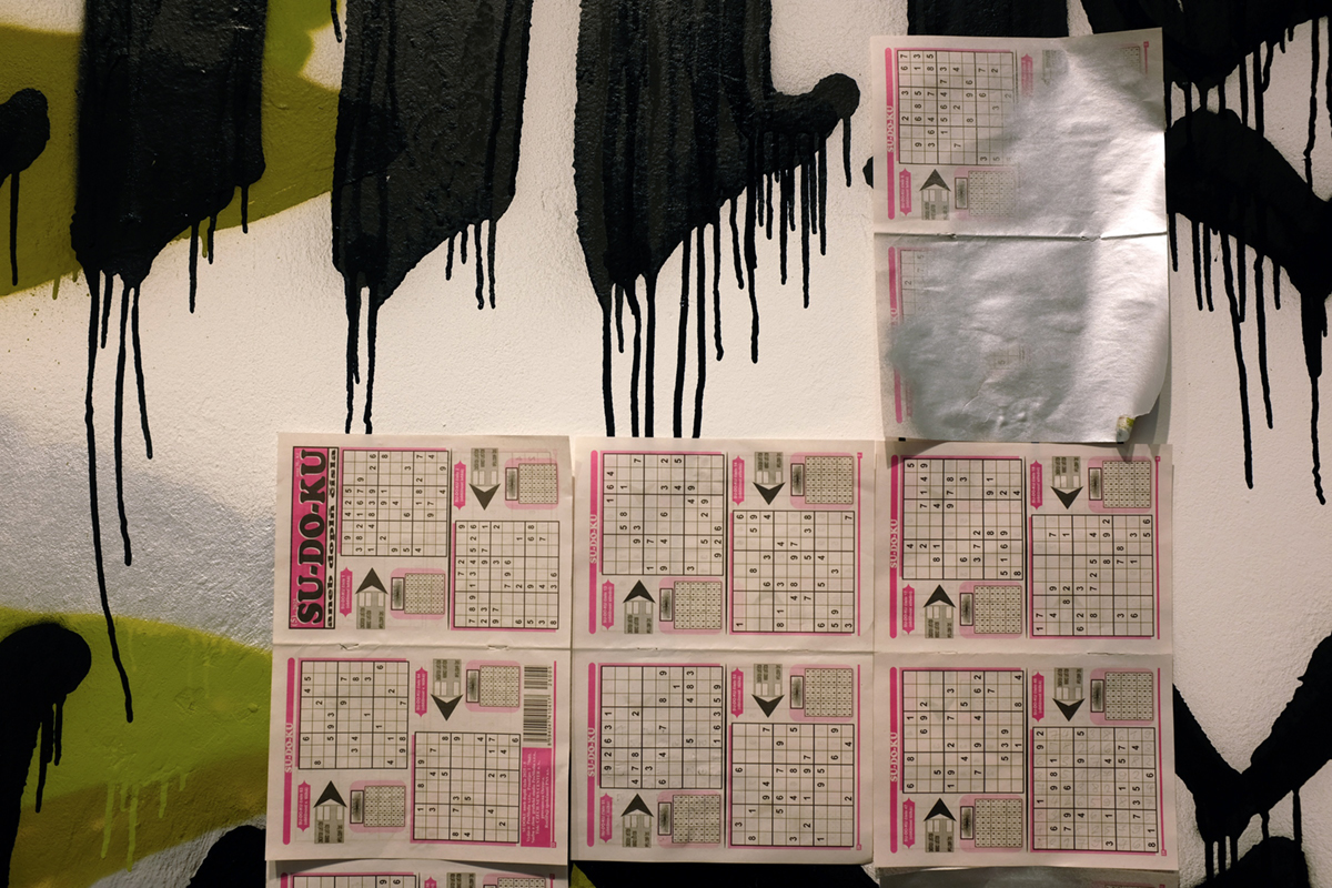 Pohled do expozice Co čumíš tak mladě: výstava o stáří jako inspiraci, která je do začátku jara příštího roku instalována v pražském Atriu Žižkov, foto: Štěpán Mikulenka Dalším dílem, jež diváka upoutá hned při vstupu, je Bez názvu od Julie Remešové. Jako jediná pracuje s tématem mezigeneračních předsudků ze strany seniorů směrem k mladým lidem, ne naopak – z jednoho takového výroku je odvozen název celé expozice. Remešová propojuje prvky graffiti, malby a ready made instalace – spojením těchto technik vzniklo dílo, jež není doslovné, přitom jeho vyznění lze dobře rozumět i bez faktografických údajů.