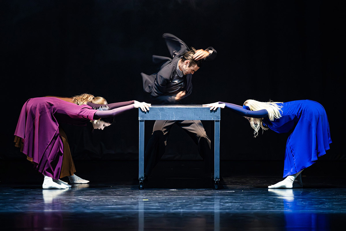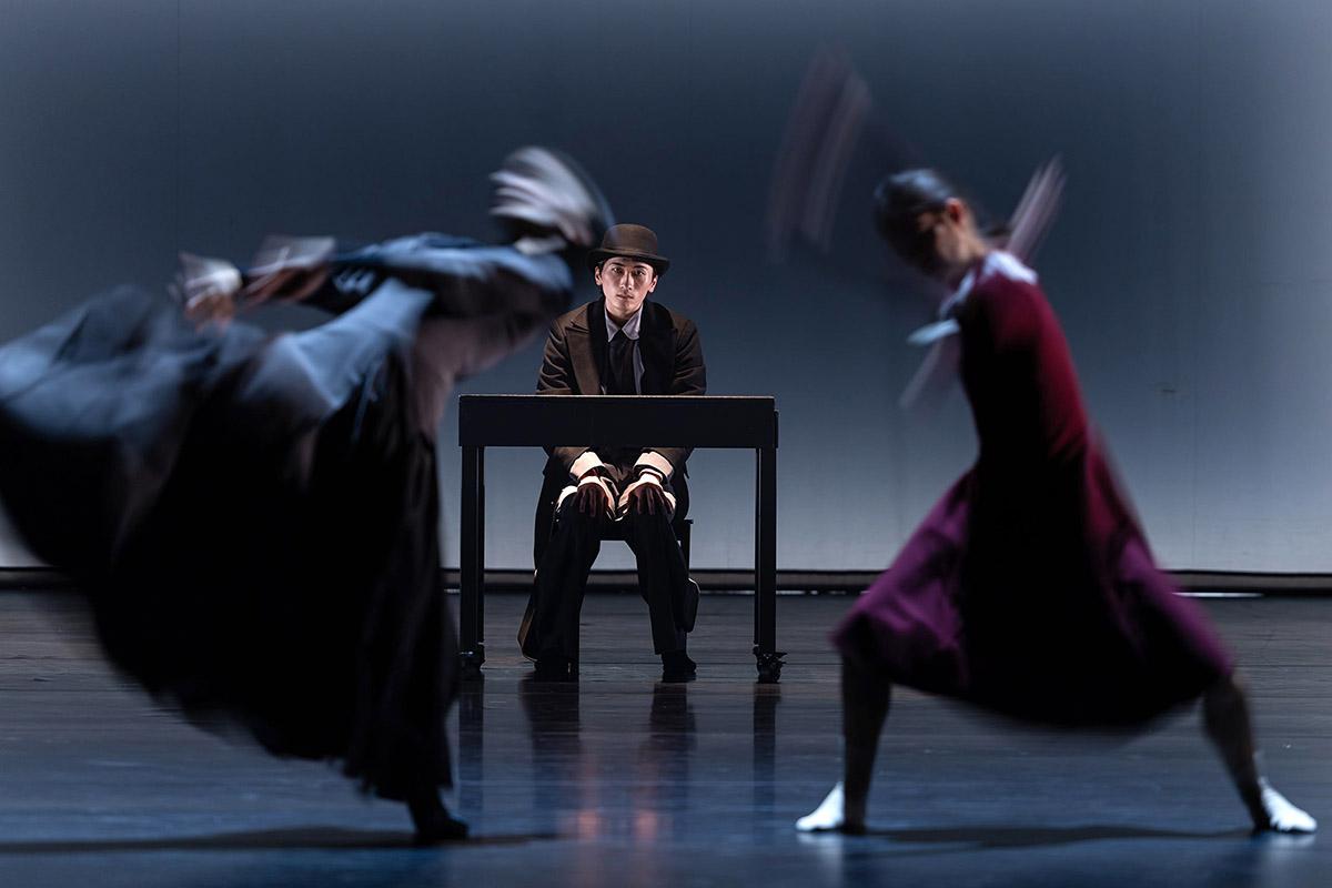 Poznámka redakce: Recenze hodnotí konkrétní premiérově představení provedené 24. října. Postavy jsou však alternovány, takže návštěvník se při některé z repríz setká s jiným obsazením, než je popsáno zde. Kupříkladu Kafku tančí nejen Arthur Abram, ale také Shoma Ogasawara, João Gomes a Manuel Romero de Haro. Felice Bauerovou ztělesňují Anna Yeh, Se Hyun An nebo Sarah Ronešová. Doru Diamantovanou tančí buď Rashmi Torres nebo Gloria Benaglia. A tak dále.