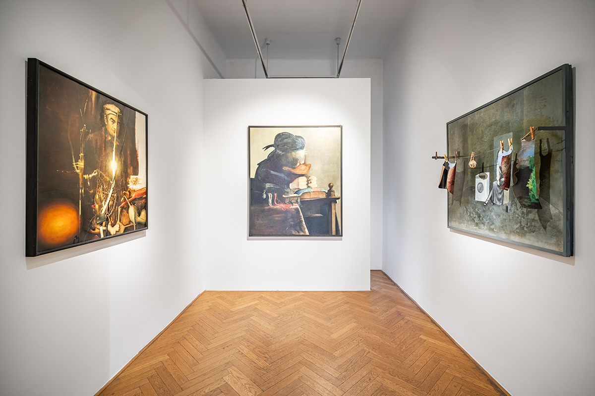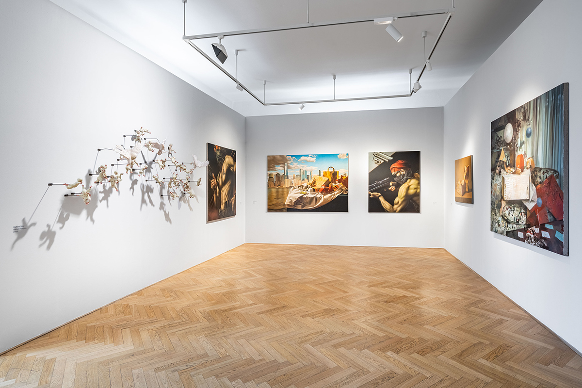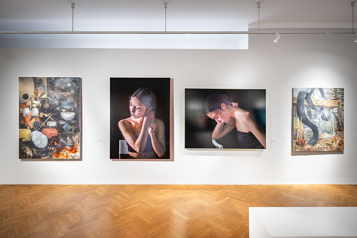 Výstava docela dobře ukazuje širokou škálu motivů a technik. Leoš Suchan aktualizuje zátiší: maluje zmačkané sáčky od rychlého občerstvení či prázdné plechovky od sladkých nápojů na pozadí mrakodrapů. Zdeněk Daněk tvoří přímo v plenéru: v obrazech „probírá“ environmentální témata – poklid lesa tu narušuje třeba spadlé letadlo. Adolf Lachman mistrovskou kresbou zpodobňuje obrazy, které mu radí umělá inteligence. Jan Petrov nabízí svou představu o zastaveném čase ve snové krajině a jeho vyvedení tváře je fascinující. Zastoupená je bohužel pouze jedna malířka – Blanka Valchářová se svými obrazy šatů.