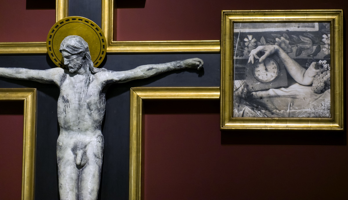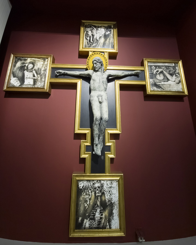 Joel-Peter Witkin & Cynthia Bency-Witkin: Detail z instalace Krucifix (1987, fotografie na olovu). Z výstavy Rozbitý svět v pražském Centru současného umění DOX, foto: ČT art – Josef Chuchma Z jiného Nového světa