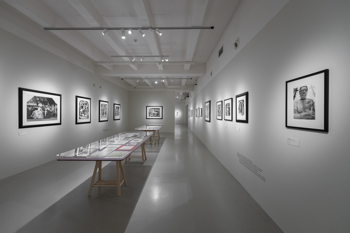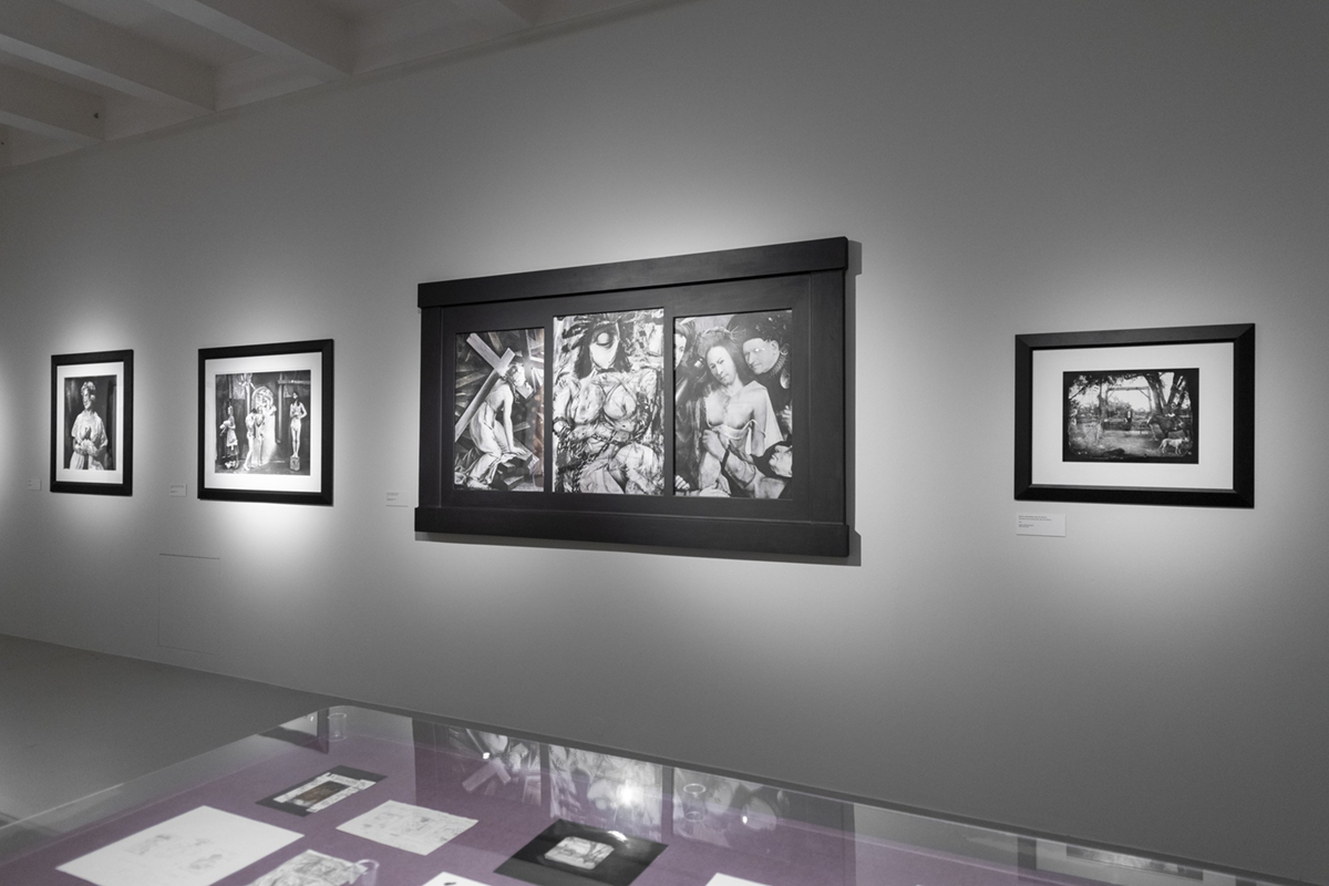 Kurátorsky není Urbanův přístup zacílen výhradně na fotografie, případně fotografické instalace. Už do brněnské retrospektivy zasadil umělcovy kresby, námětově související s některými snímky. Witkin – obdobně jako nejeden tvůrce komplikovaně aranžovaných, silně stylizovaných fotografií – si v přípravné fázi pořizuje náčrty, ostatně má výtvarné vzdělání, studoval sochařství. Podstatnou součástí nynější pražské přehlídky pozdního Witkina jsou vedle kreseb rovněž zápisky a množství kontaktních kopií negativů, z nichž je patrný proces fotografování daného námětu. Máte možnost spatřit vzniklé variace a můžete vydedukovat rozsah intervencí do obrazů v následujícím procesu: při zvětšování, při adjustování, formou domalby, škrábanců, tónováním či vpisováním textů do výsledné zvětšeniny. Podíl ruční práce je u Witkina enormní a každá finální fotografie se stává originálem.