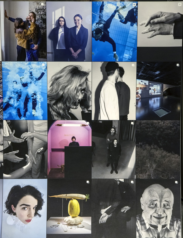 Veškrna má s Yutongem Xieem společné přinejmenším to, že bez nějaké velké výrazové sofistikovanosti, bez udivující technické či kompoziční brilance, ale také ne amatérsky či „nevědomě“, prostě digitálně a barevně zaznamenává někdy surreálná, jindy více melancholická setkání v (převážně) městské krajině. Do místnůstky Teleportu se na její dvě protilehlé podlouhlé zdi příliš exponátů nevměstná, pokud nechcete volit exponáty pohlednicového formátu. Tím spíš si každý, kdo tam vystavuje, musí velmi dobře rozmyslet, co vybere. Vojtěch Veškrna je v tom střídmější než třeba v nedávné minulosti Tomáš Pospěch či Dušan Tománek. Ale to asi jen kvůli druhé linii v instalaci OFF Grid. Galerijním prostorem se totiž vine dlouhý pás záběrů právě pohlednicového formátu (pořadatelé píší o devíti metrech délky). Vznikl stažením, vyzvětšováním a vytištěním Veškrnova instagramového účtu. Ta přepestrost, deníkovost a hlavně zalidněnost na stovkách záběrů stojí v přímém kontrastu se solitérními scenériemi městské divočiny bez lidí, se záběry „mimo mřížku“.