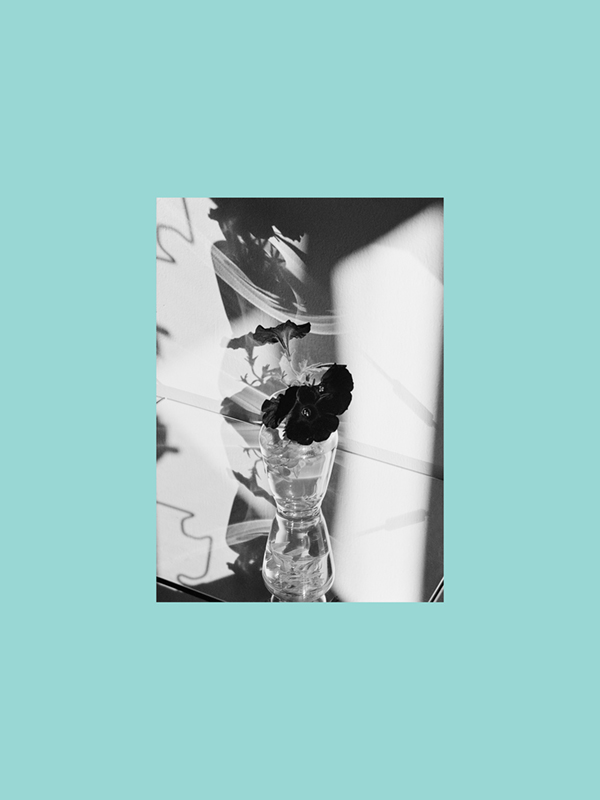 Ale popořadě. Než abych zde takzvaně svými vlastními slovy beztak jen přepisoval to, co v doprovodném textu k Date with a Plant (Rande či dostaveníčko s květinou) líčí kurátor výstavy Ján Gajdušek, rovnou zacituji z jeho textu, když přibližuje, o co běží: Jde o časosběrnou sekvenci „černé surfinie, jejíž velurově tmavé květy se sametovým povrchem světlo spíše pohlcují než odrážejí. Brousil pracoval metodou DIY ve svém vinohradském bytě a pro záznam použil fotoaparát Yashica Samurai Z z roku 1989 ve formátu half-frame (18 × 24 mm), výsledný film následně přeskenováním a digitálním tiskem převedl na povrch skleněných desek. Sekvence pětadvaceti snímků pokrývá časovou osu pětadvaceti hodin a vytváří tak fiktivní pětadvacetihodinový den, který funguje jako záměrné vychýlení z civilizační normy 24/7. Dvacet pět fotografií je zároveň nepravidelně rozloženo do dvanácti barevných odstínů – šesti náležejících do spektra dne a šesti do spektra noci. Sametová čerň květů surfinie i technologie tisku na transparentní materiál nám pak připomínají nesamozřejmost viditelného obrazu v podmínkách reprodukce.“