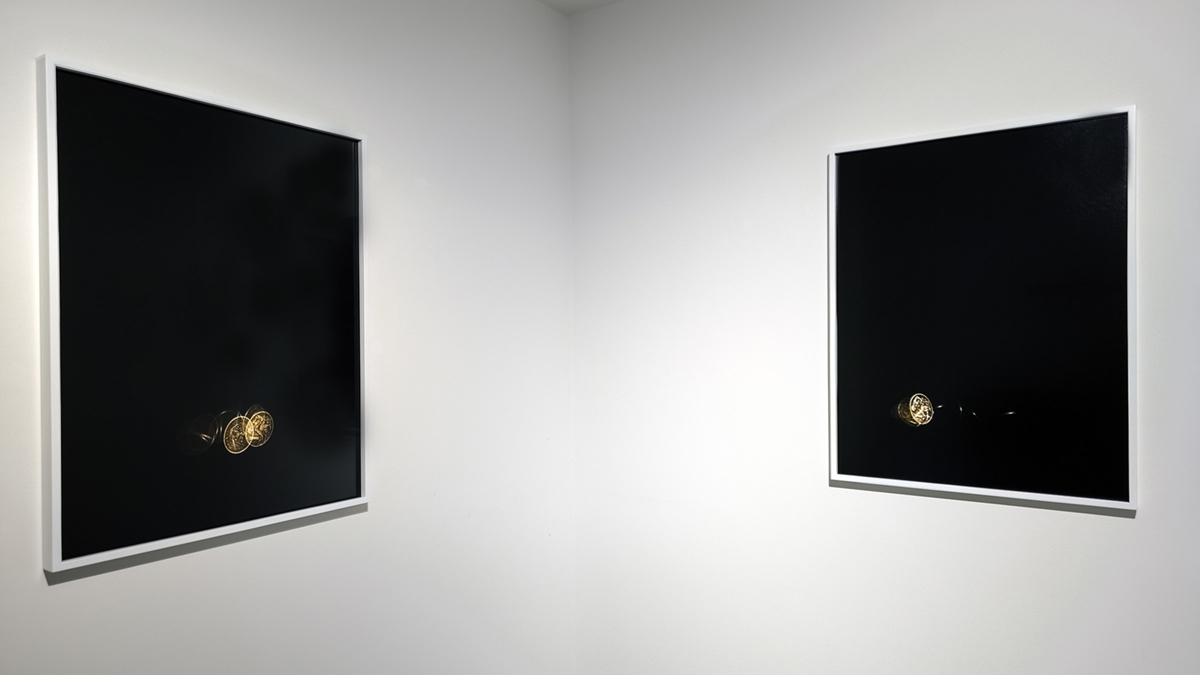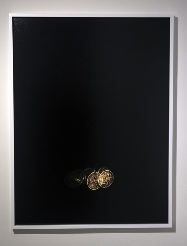 A ještě něco k dvěma výškovým fotografiím instalovaným v postranním prostoru AJS. Reálně na nich na tmavém pozadí rotuje mince jedné koruny československé. Tady jste ovšem bez vysvětlujícího textu beznadějně ztraceni. Tak poslouchejte kurátora: „Okamžik rotace zviditelňuje stav mezi, tedy svět, který se právě transformuje a překlápí a jehož budoucnost je nejednoznačná. Symbolika dívky sázející květ lípy na rubu mince je zde pomyslnou analogií pro křehkost surfinie. Současně se pak autorova volba aparátu z roku 1989 propojuje s mincí do dvou historických mezníků, které se k dnešku vracejí v jakémsi znepokojivém loopu. Odkazy na roky 1968 a 1989 jsou zde jemným upozorněním, že zásadní dějinné události často dozrávají dlouho, zatímco jejich průběh bývá překotný a současné proměny společenského i geopolitického řádu tak mohou nést podobnou logiku náhlých zlomů, které se teprve zpětně jeví jako nevyhnutelné.“ – Tohle byste z oněch dvou fotografií sami nevyčetli ani kdybyste měli pušku v zádech nebo vám hrozila mučidla, to vám garantuju.