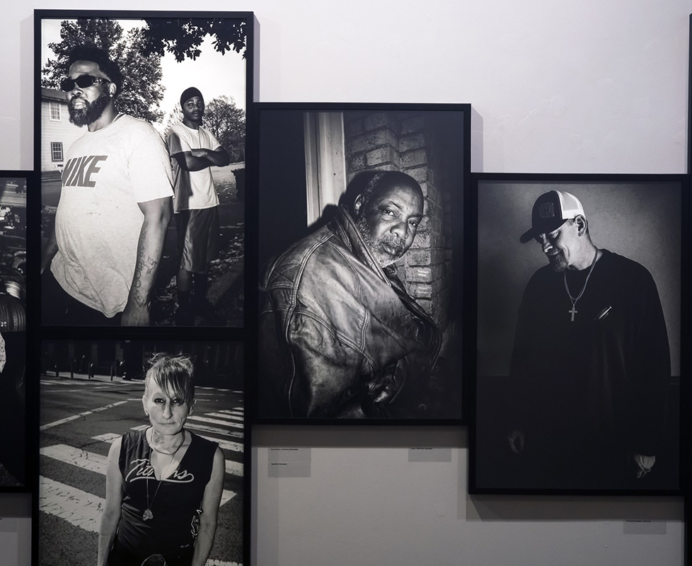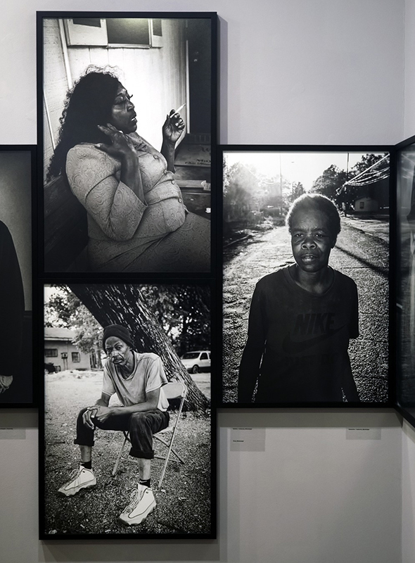 Detail z úvodní části instalace výstavy Pavla Nasadila Delta. Americké deníky v Leica Gallery Prague, foto: ČT art – Josef Chuchma Kolekce Delta. Americké deníky zkrátka není snůškou vynikajících jednotlivostí, jakkoliv obsahuje několik „samonosných“ silných snímků. Devízou souboru je neokázalý zájem o téma, vědomí souvislostí, služba celku, koncepční uvažování, které si, prosím, neplést s konceptuálním přístupem. Pavel Nasadil neuvažuje v metavýznamech, jeho rozum a cit primárně nesledují „myšlenku“, pro niž se hledá vizuální a interpretující kód, nýbrž s pokorou přistupuje k žité realitě. Z poslední doby se mi v tuzemském kontextu vybavuje jediná výstava fotografického dokumentu, která by obdobně naslouchala prostoru a instalaci rovněž chápala coby prostředek k zásadnímu umocnění zážitku, totiž Rustonka Karla Cudlína, jež byla loňské jaro instalovaná v pražské Synagoze na Palmovce.