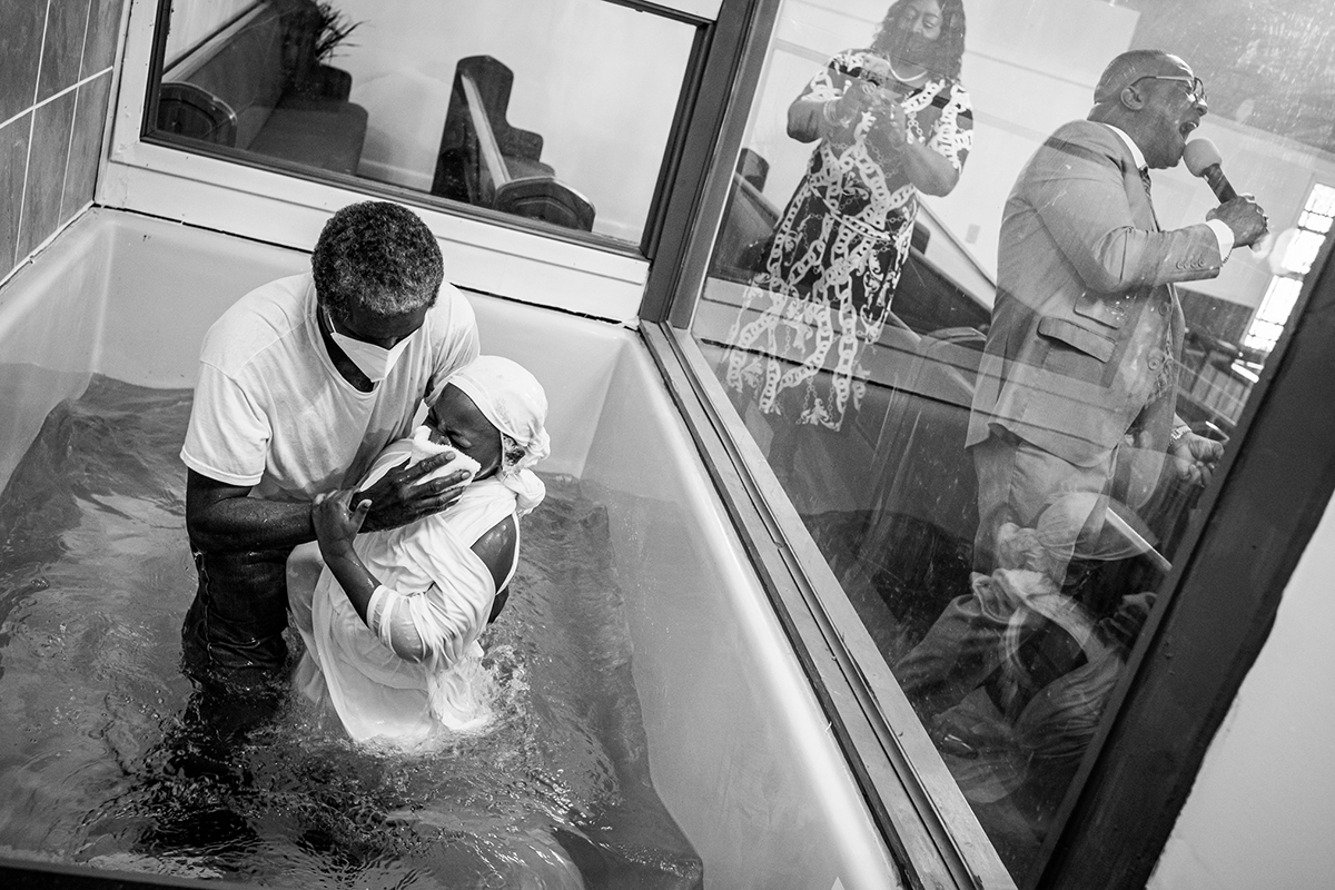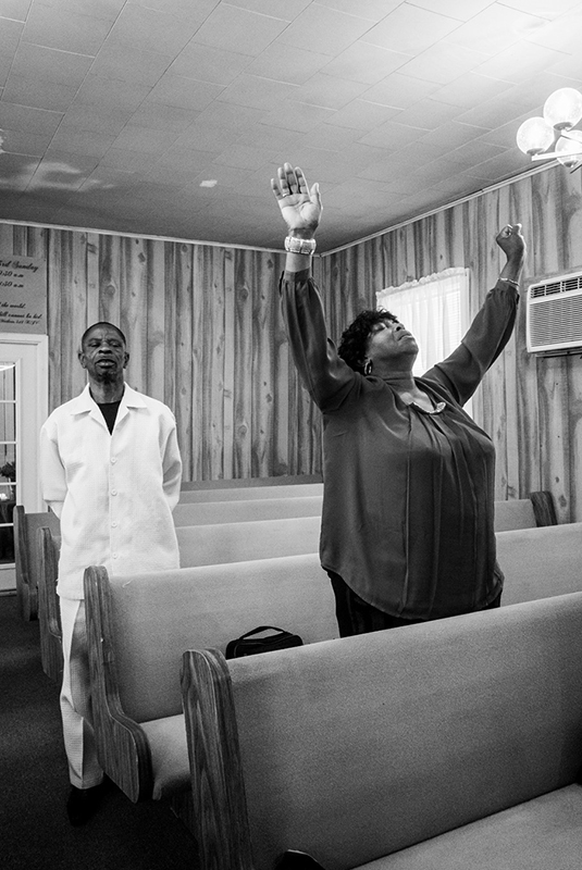 Pavel Nasadil: Ashley, Memphis, Tennessee, rok 2023. Z autorovy výstavy Delta. Americké deníky v Leica Gallery Prague, foto: © Pavel Nasadil „Překračoval jsem hranice jednotlivých států sem a tam, bloumal jsem skrz Mississippi, Louisianu, Arkansas, Tennessee, Alabamu a Kentucky. Projížděl jsem městy i malými obcemi, pátral po stopách příběhů, historických i současných, vyslovených i těch beze slov,“ píše autor v textu k výstavě. „Fotografoval jsem gospelové zpěváky na nedělních mších zalitých ranním světlem, opuštěná nároží ve městě, farmáře obědvající v krámech na vesnici, pohřební průvody a rozlehlé krajiny, které působily zapomenutě a věčně.“