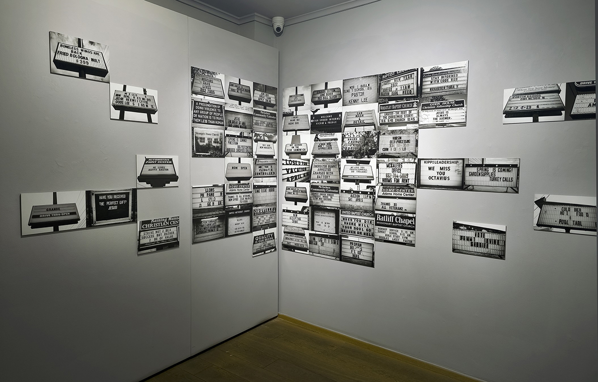 Vůbec důraz na instalaci, jež naslouchá členitým prostorům galerie a současně komponuje práce do logických kapitol, je výrazným rysem Nasadilovy prezentace; téměř jistě se v tom projevuje profese architekta, cit pro umístění. Fotograf rovněž velmi dobře ví, co které snímky chtějí a unesou, těm obrazově nejzajímavějším poskytuje velkorysý prostor, vytiskl je do velikosti, v níž sugestivně vystupují na povrch struktury těl či hmoty. Naopak kapitola Pouliční evangelium sestává z několika desítek na (dvou sousedních) stěnách rozstrkaných záběrů pouličních tabulí-nápisů, které „zachycují rytmus a hodnoty každodenní Ameriky – její morální připomínky, pozvání k jídlu, modlitbě i sounáležitosti,“ jak uvádí autor v textu, který na stěně galerie tento oddíl doprovází.