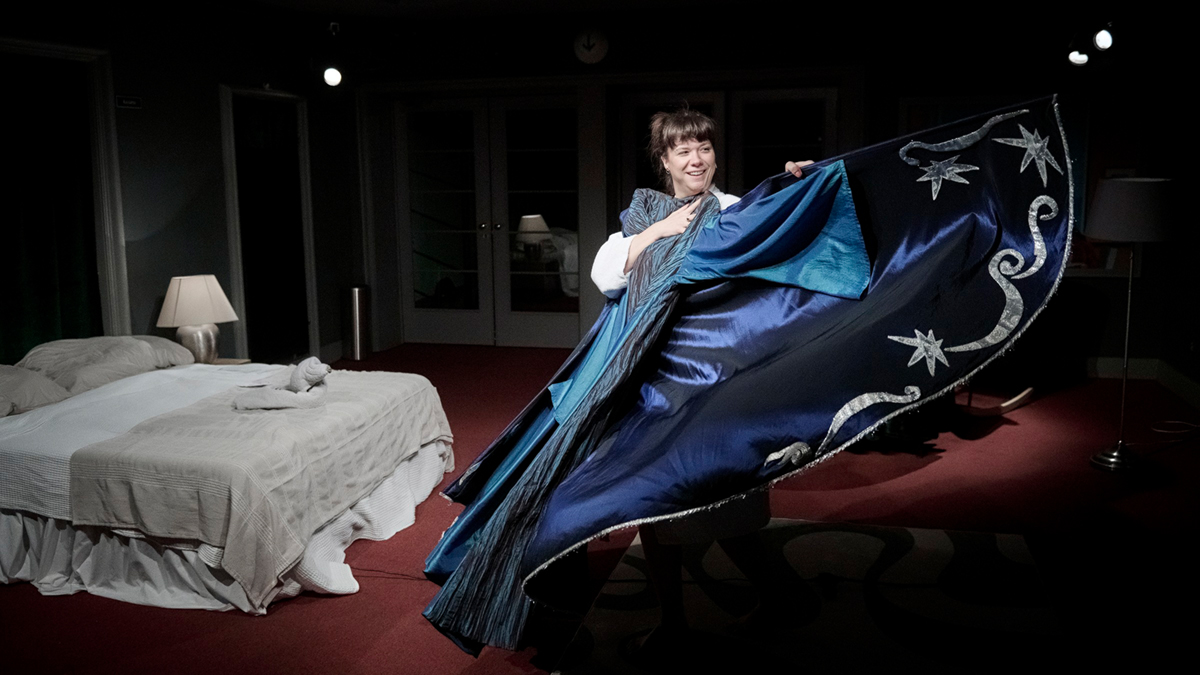 Změnila leccos i ve srovnání s předlohou Pauline Delabroy-Allard (od ní potom v roce 2023 česky vyšla další próza – Kdo ví). Výhradním dějištěm adaptace je hotelový pokoj: postel, křeslo, stolek, klasická strohá výbava. Sem se uchýlila vypravěčka (Eva Hacurová), povoláním učitelka, která se vzpamatovává z vášnivého vztahu s houslistkou Sarah (Kristýna Jedličková). Vypravěčka si přehrává jednotlivé situace jejich skvělého souznění i bolestného míjení; do vztahu se Sarah přitom „spadla“ nedlouho poté, co s ní zamával rozchod s mužem. Sarah se zde vyskytuje vlastně jako přízrak. Kristýna Jedličková ztělesňuje ženu nezúčastněně obstarávající hotelový servis, ale současně rovněž onu hudebnici, která se zjevuje a zase mizí, a tím zamilovanou vypravěčku manipulativně „vozí“ po emočních vlnách, zraňuje ji a vysává. To vše beze slov. Respektive: ke konci několik slov Sarah přece jen pronese. O to víc mluví postava ztvárněná Hacurovou: ta je výřečná velmi.