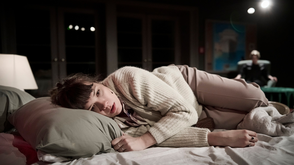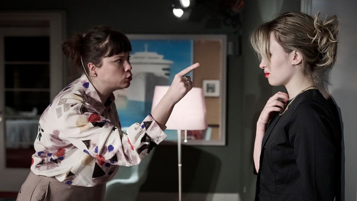 Eva Hacurová a Kristýna Jedličková v inscenaci Ona je živá pražského Divadla v Dlouhé, foto: Divadlo v Dlouhé – Martin Špelda Bez kvalitních hereckých výkonů by z toho mohla být monotónní, a dokonce ukňouraná lamentace citově zlomeného člověka. Režisérka nasměrovala Evu Hacurovou k poloze, kdy herečka citové zranění postavy, ba její zoufalství, nebagatelizuje, lesbická vztahová kapitola je zde nahlížena bez zlehčování či naopak edukativního zdůvodňování – základem prostě je potřeba intimní blízkosti k druhému člověku bez ohledu na pohlaví. Při tom všem si Hacurová od figury drží nadhled, s jemnou ironií – prostřednictvím intonace a dikce, překotných a znejistěných pohybů či prosakováním vnitřní paniky – jako by poznamenává, že zborcený člověk může ve svých vnějších projevech mít blízko i k směšnosti. Natvarování Jedličkové od korektní služebné bytosti k takové, která druhého člověka uhrane, použije, vysaje, opustí a jde si po svém, je obdobně plastické, jakkoliv je mlčením přízračné. Kristýna Jedličková v Dlouhé nastálo působí od nynější sezóny a velmi dobře se tu uchytila, je posilou souboru.