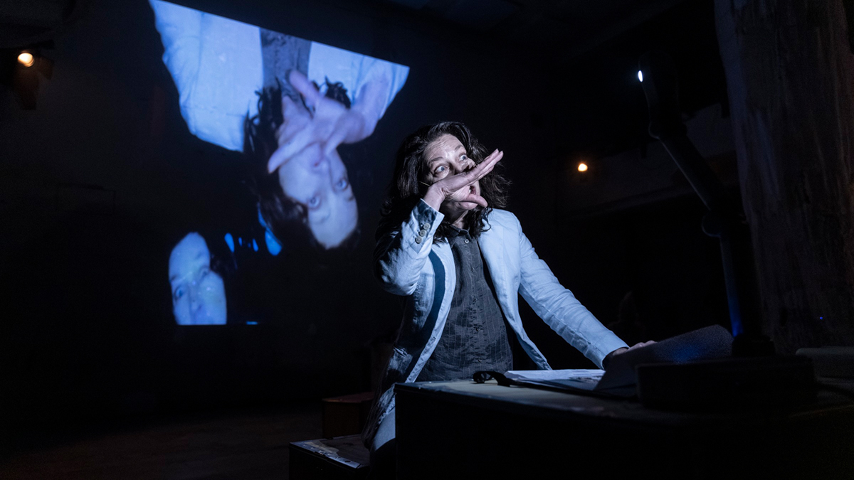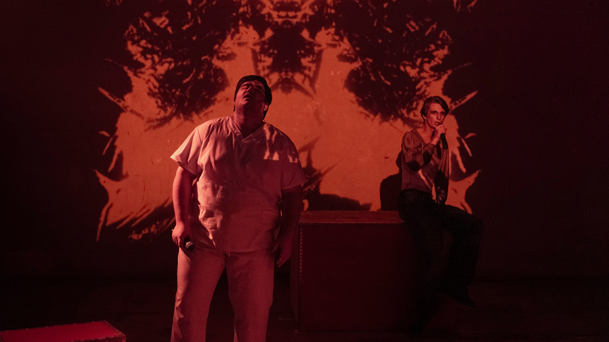 Citované věty poukazují na podstatný rys románové Knihy krve, totiž používání a povahu jazyka; právem také byla po uvedení překladu zacílena pozornost na to, jaká řešení volila Jana von Luxemburg při hledání českých ekvivalentů nebinárního výraziva Kim de L’Horizon. To zde zmiňuji a zdůrazňuji proto, že takto na jazyce a experimentech s ním založenou prózu je z podstaty věci, kvůli přenosu z média do média, obtížné a riskantní inscenovat. Mám za to, že tvůrci scénáře Štěpán Gajdoš a Ondřej Novotný (a první z nich současně jako režisér) udělali, co mohli, aby k jazykové hmotě Kim de L’Horizon našli inscenační klíč. V nemalé míře se jim to i podařilo. Ale přece: výsledek je hodně literátský, víc „kniha“ než drama. Příliš, příliš, příliš slov, nadbytek větvených promluv, za sebou kladených monologů. Nadto jsou slova občas i promítána na stěnu, a to nikoliv ve formě hesel či výkřiků, nýbrž celých definic a zvýrazněných pasáží z reprodukovaných stránek knih. Takové přesycení slovy ostatně charakterizuje všechny tři dnes probírané inscenace.