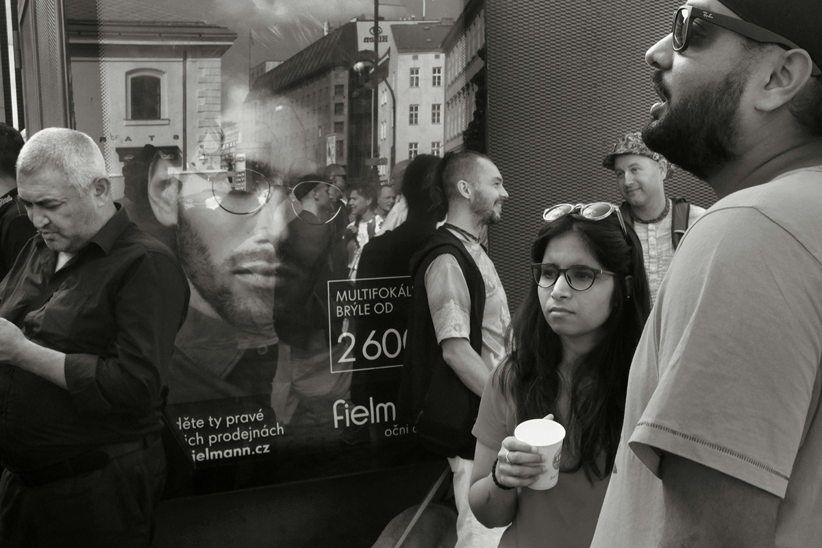 Snažit se dneska o takzvanou street fotografii je daleko těžší než v časech, kdy lidé ještě nedrželi v rukách mobilní telefony, respektive takové mobily, s nimiž sami mohou pohodlně a kdykoliv fotit. Fakt, že tuto možnost mají, současně totiž znamená existenci sociálních sítí a vysokorychlostního internetu vůbec, jejichž prostřednictvím lze fotografii téměř okamžitě publikovat. A ve virtuálním světě si pak snímek může začít žít vlastním životem, s nímž ten, kdo je na fotce zachycen, nemusí být srozuměn, z různých důvodů si takový záznam sebe sama nepřeje. Souběžnost snadné možnosti fotografování a publikování a obezřetnosti, kdo a proč na mě zamíří objektiv, se tím spíš nemůže neprojevit vůči lidem, kteří v ruce drží samostatný fotoaparát, tělo (bez)zrcadlovky s objektivem, násobně větší než mobil. Pohybujete se na nepřívětivé půdě. K úhoně lze s fotoaparátem v ruce a se zvědavostí v očích přijít snadno. Tuto zkušenost vám dnes potvrdí prakticky každý, kdo se o street „úlovky“ pokouší. Však také současná česká fotografická scéna nedisponuje plejádou výrazných osobností „pouliční“ dokumentaristiky.
