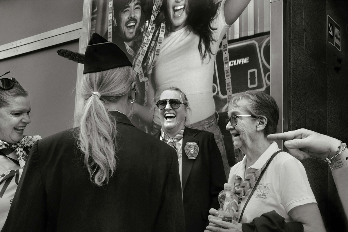 Art Café Mánes, Praha 2025. Z výstavy Josefa Husáka Skryté divy města v Leica Gallery Prague, foto: LGP – Josef Husák To je tedy základní společensko-technologický kontext, v němž rodilý Pražák Josef Husák vyráží do ulic. Už ta vytrvalost a vlastně i odvaha zaslouží respekt. Černobílá kolekce Skryté divy města, instalovaná v Leica Gallery Prague, obsahuje desítky záběrů z let 1984–2005, ovšem většina z nich vznikla právě až v éře mobilní komunikace. Snímky z konce minulého století a počátku století nynějšího jsou zde početně zastoupeny sice skromně, ale náleží v rámci výstavy k nejlepším. Důvody jsou tři: a) nevykazují zobrazovací digitální stejnost jako práce pozdější; b) působí „fyzičtěji“ a také v náhledu na situace a děje ostřeji, kromě jiného proto, že autor se asi nacházel v lepší fotografické kondici; c) vizualita velkoměstských ulic ještě nebyla globalizací tak „zuniverzálněna“, jako je tomu nyní. Tohle všechno „pokořit“, zmoci to k osobní a originální výpovědi, je olbřímí úkol.