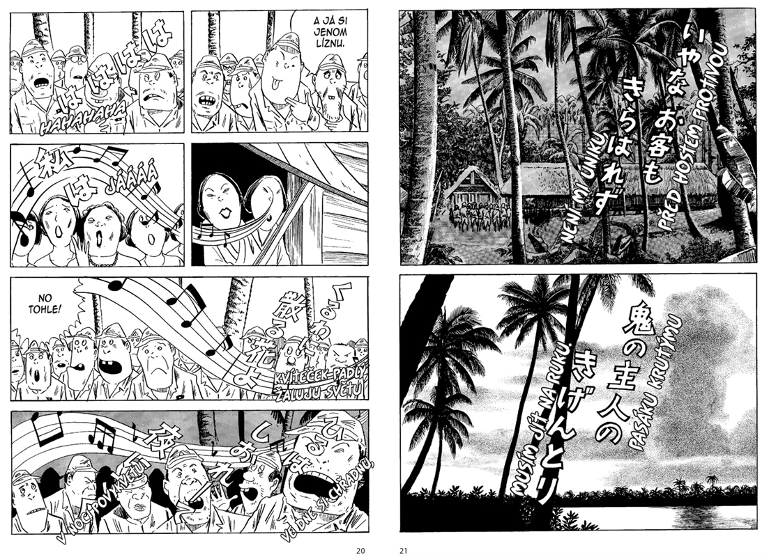 Už nějakou dobu máme možnost číst i některé zásadní tituly jednoho z velkých klasiků japonského komiksu, Šigerua Mizukiho (1922–2015). Proslavil se především jako autor brilantní nadpřirozené mangy Kitaró, vycházející z pantheonu japonských folklorních strašidel jókai. Část jeho tvorby ovšem spadala do druhu mangy, jemuž se říká gekiga – ta vznikla v šedesátých letech coby dospělejší a autorsky zaměřená alternativa mangy cílené spíše na dospívající publikum. Autoři jako Jošihiro Tacumi, Jošiharu Cuge nebo Sanpei Širato vytvářeli civilní, často bezútěšné příběhy zachycující každodennost poválečného Japonska, případně směřovali k surreálným snovým náladám nebo se revizionisticky vraceli k předmoderní národní historii.