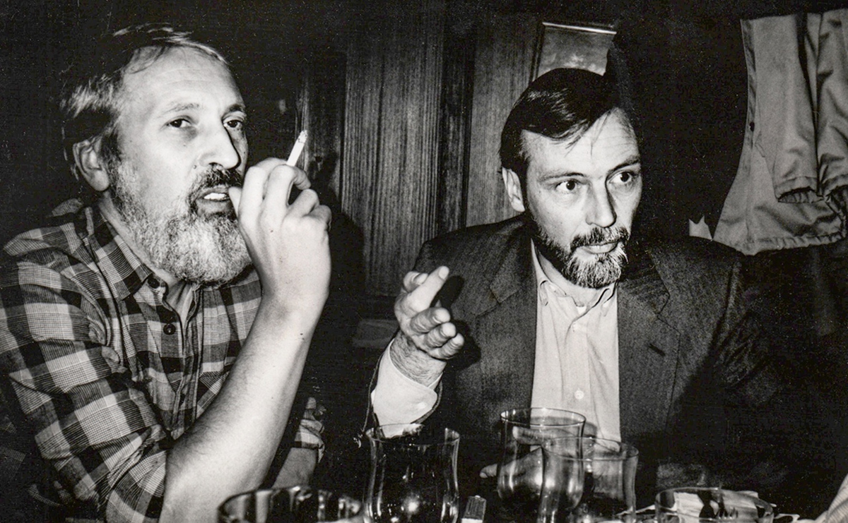 Lubor Dohnal (vpravo) spolu s režisérem Ivanem Balaďou při natáčení dokumentárního filmu, Trnava cca 1976, zdroj: Paměť národa