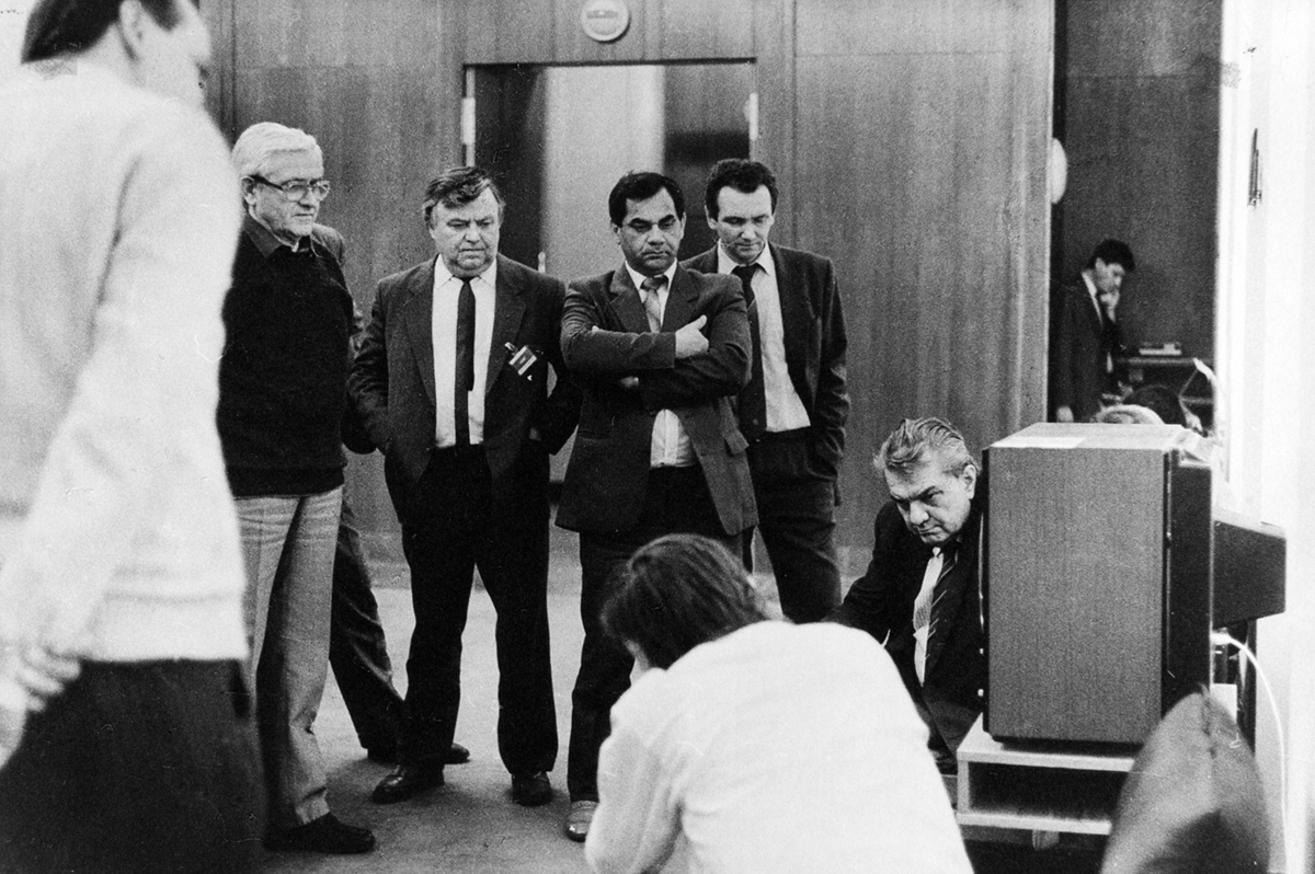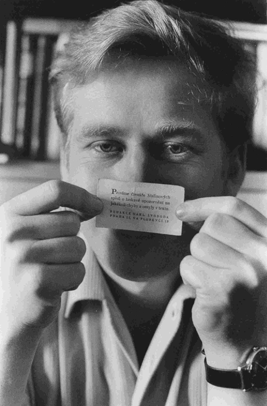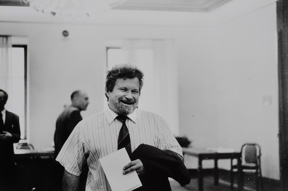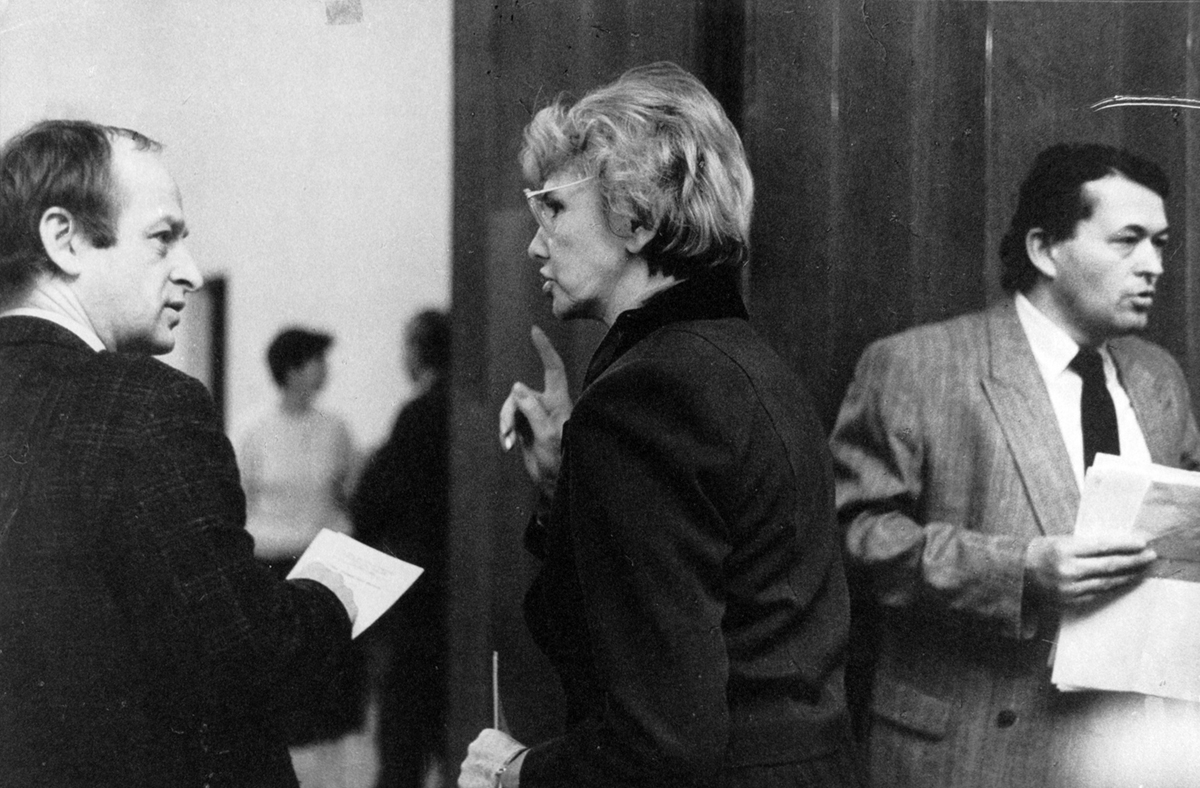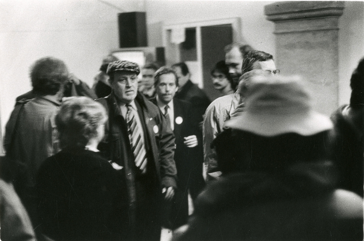 Z cyklu Aurora (Jan Foll, Václav Havel, v pozadí Václav Klaus), Praha, listopad 1989. Z retrospektivy Dagmar Hochové v pražském Domě fotografie, foto: © – Dagmar Hochová Jedna z výstav roku