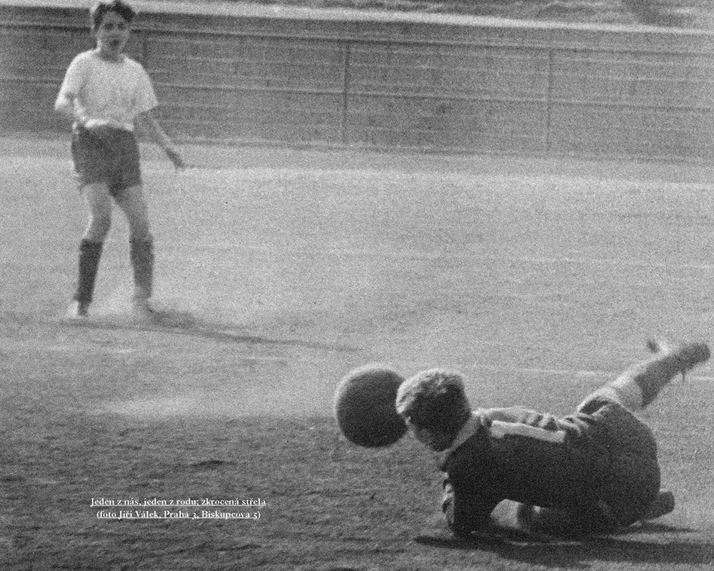 Gejša v dolní řadě první zleva – tehdy dvaatřicetiletí brankář záložního týmu Slavoje Vyšehrad, repro: ČT art S. d. Ch.: Gejša