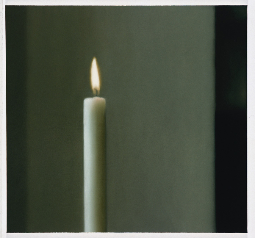 Gerhard Richter: Lesende, 1994, olej na plátně, 72 x 102 cm. Z autorovy výstavy v pařížské Fondation Louis Vuitton, repro: Fondation Louis Vuitton Zcela specifické místo pak v malířově díle zastávají některé obrazy z osmdesátých let – jsou v zásadě realistické, avšak ukrývají v sobě vnitřní náboj a silnou melancholii. Týká se to kupříkladu zátiší Lahev s jablkem, Lebka anebo Svíčka. Posledně jmenovaný obraz z roku 1982 dobře znají posluchači alternativního rocku, neboť zdobí ikonický obal jednoho z nejslavnějších alb americké skupiny Sonic Youth Daydream Nation (1988).