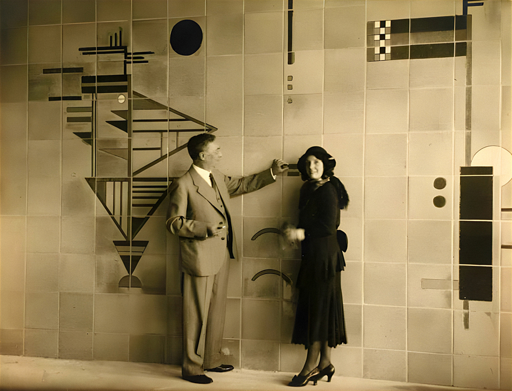 Od roku 1922 učil Vasilij Kandinskij na slavné výmarské umělecké škole Bauhaus. V tomto období rozšířil svůj zájem o syntézu stylů, což mu umožnila jednak čím dál patrnější inklinace ke zdůraznění geometrického výrazu v malbě, jednak její aplikace na další umělecké druhy, počínaje architekturou a konče scénografií. Právě té je věnován poměrně velký prostor nejen prostřednictvím Kandinského nákresů, ale i realizace dvou scénografických návrhů v měřítku „jedna ku jedné“, totiž ke scénickému provedení Musorgského Obrázků z výstavy (1928) a Hudebního pokoje pro Berlínskou architektonickou výstavu (1931).